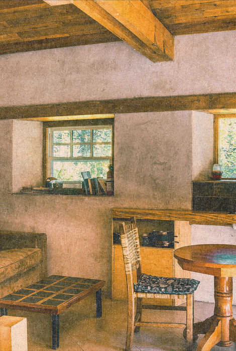 La maison en ballots de paille GREB est un mélange artisanal distinctif de charpente en bois et de construction en paille. Ses murs respirants assurent un confort tout au long de l'année, restant chauds en hiver et frais en été. Située dans un environnement forestier paisible, elle dispose de grandes fenêtres pour s'imprégner du paysage naturel.